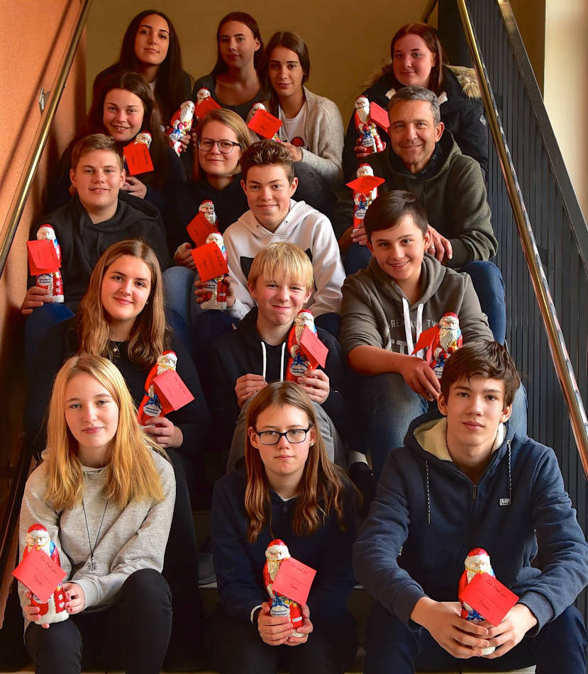 Auch in diesem Jahr haben wir unsere Nikolaus-Aktion durchgeführt: Fast nahtlos konnten wir an das tolle Vorjahresergebnis anknüpfen und haben in diesem Jahr 449 Schokoladenweihnachtsmänner an unsere Schülerinnen und Schüler, Lehrkräfte und Angestellte verteilen können. Besonders beliebt war die Aktion in diesem Jahr bei der 6. Klassenstufe, die reichlich beschenkt wurde und verschenkt hat.