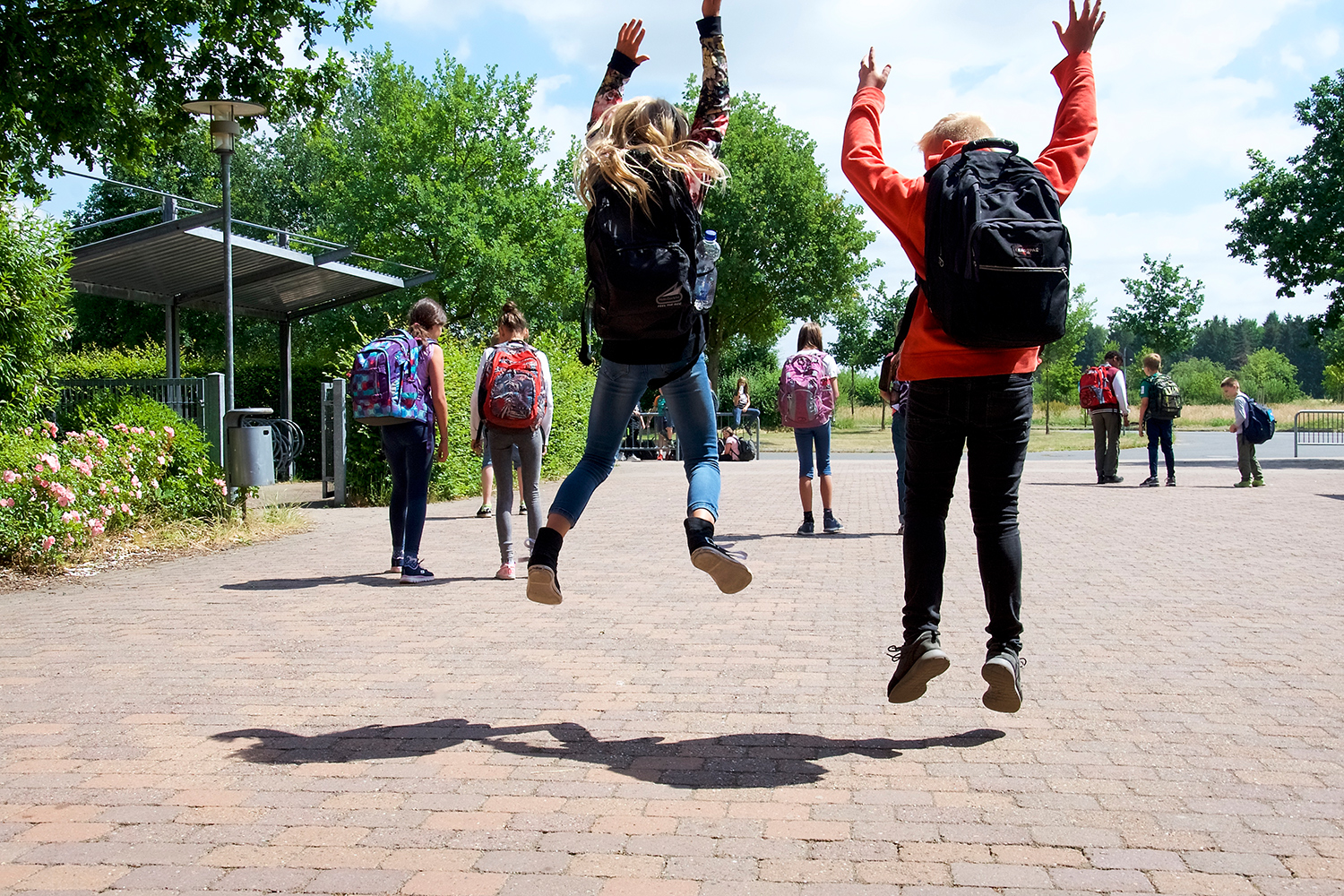 Schulschluss! Das ist wie überall das Beste an der Schule. Um 13 oder 15 Uhr ist Schluss. Zum Glück ist der Weg zur Bushaltestelle ganz kurz. Nur Schritte. Haben wir gezählt. Wir hoffen, der kleine Rundgang hat euch gefallen.