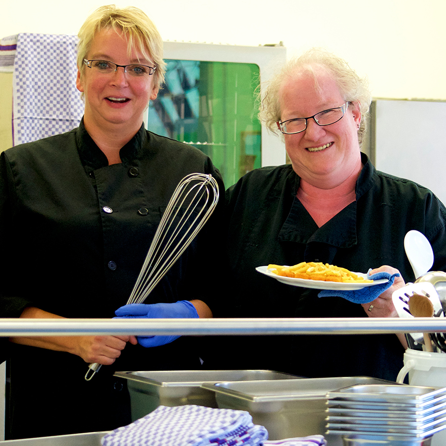 Maike Dierks und Stefanie Meyer sorgen für das leibliche Wohl der Schüler in der Mittagspause.